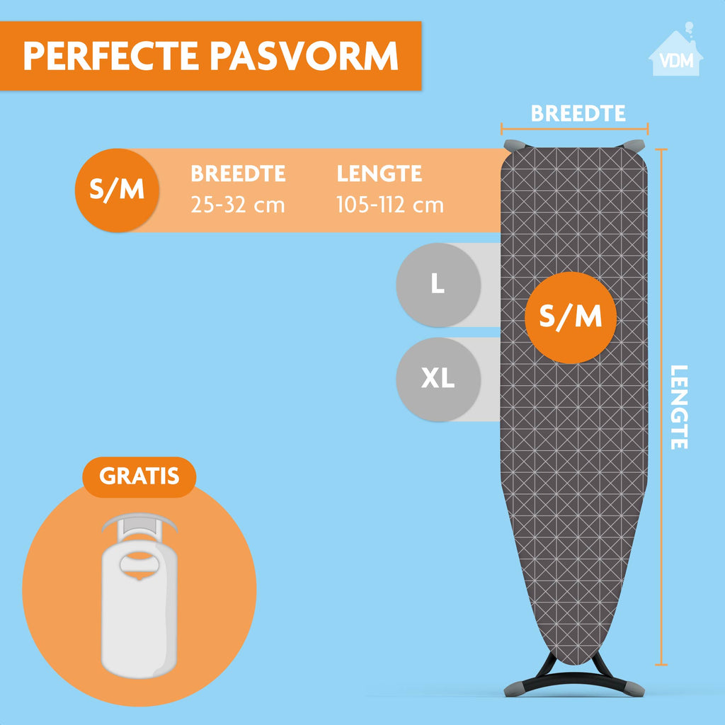📐 S/M Past op alle merken strijkplanken zoals onder andere Brabantia, Leifheit, Blokker en Vileda met een breedte van 25-32 CM en een lengte van 105-112 CM